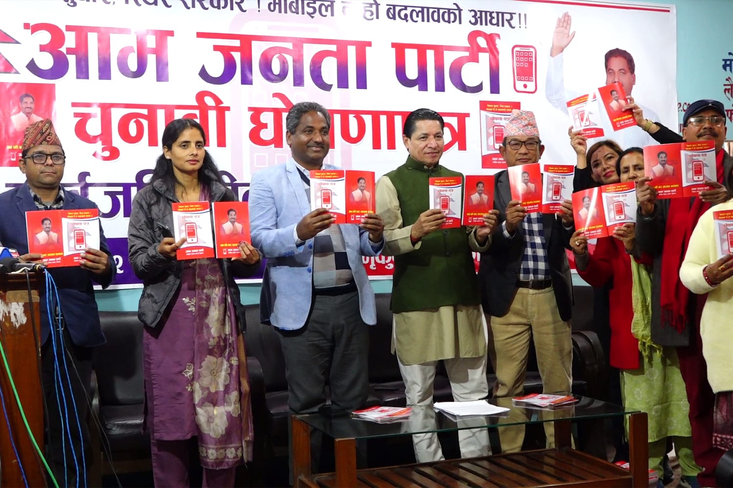 आजपा अध्यक्ष प्रभु साहले घोषणापत्र सार्वजनिक गर्दै