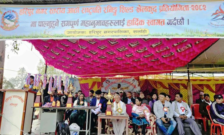 सर्लाही,१६ मंसिर । सर्लाहीको हरिपुर नगरपालिकामा नगर स्तरीय आठौँ राष्ट्रपति रनिङ्ग शिल्ड खेलकुद प्रतियोगिता सुरु भएको छ । हरिपुर नगरपालिकाको आयोजना तथा नगर प्रमुख गोपाल पजीयारको अध्यक्षतामा मंगलवारदेखि प्रतियोगिता औपचारिक रूपमा सुरु गरिएको हो ।