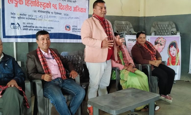 ‘लैङ्गिक हिंसा, मानव अधिकार, कानूनी शासन’ विषयक अभिुमखीकरण कार्यक्रमको सहजीकरण गर्नुहुँदै इन्सेक कोशी प्रदेश संयोजक मनोहर कुमार पोखरेलले सबै प्रकारका हिंसा अन्त्य गर्न महिलाको राजनीतिक, सामाजिक र सांस्कृतिक सम्मानजनक उपस्थिति र सहभागिता सुनिश्चित हुनुपर्ने बताउनु भयो । पोखरेलले स्वतन्त्रता, समानता, मर्यादित जीवन र समन्यायको प्रवर्धनका लागि विभेद र हिंसाका कारक तत्व पहिचान गरेर समाधान गर्न सदैव प्रयत्नशील रहनु पर्नेमा जोड दिनुभयो ।